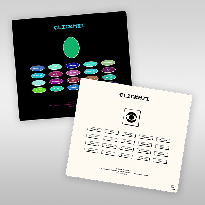 How to play with the web interface and make it fun? That's what we sought to do with Clickmii, a mini-game based on micro-interactions and micro-animations. The interface displays a collection of 20 buttons, each interacting in a more or less unexpected way with the user.