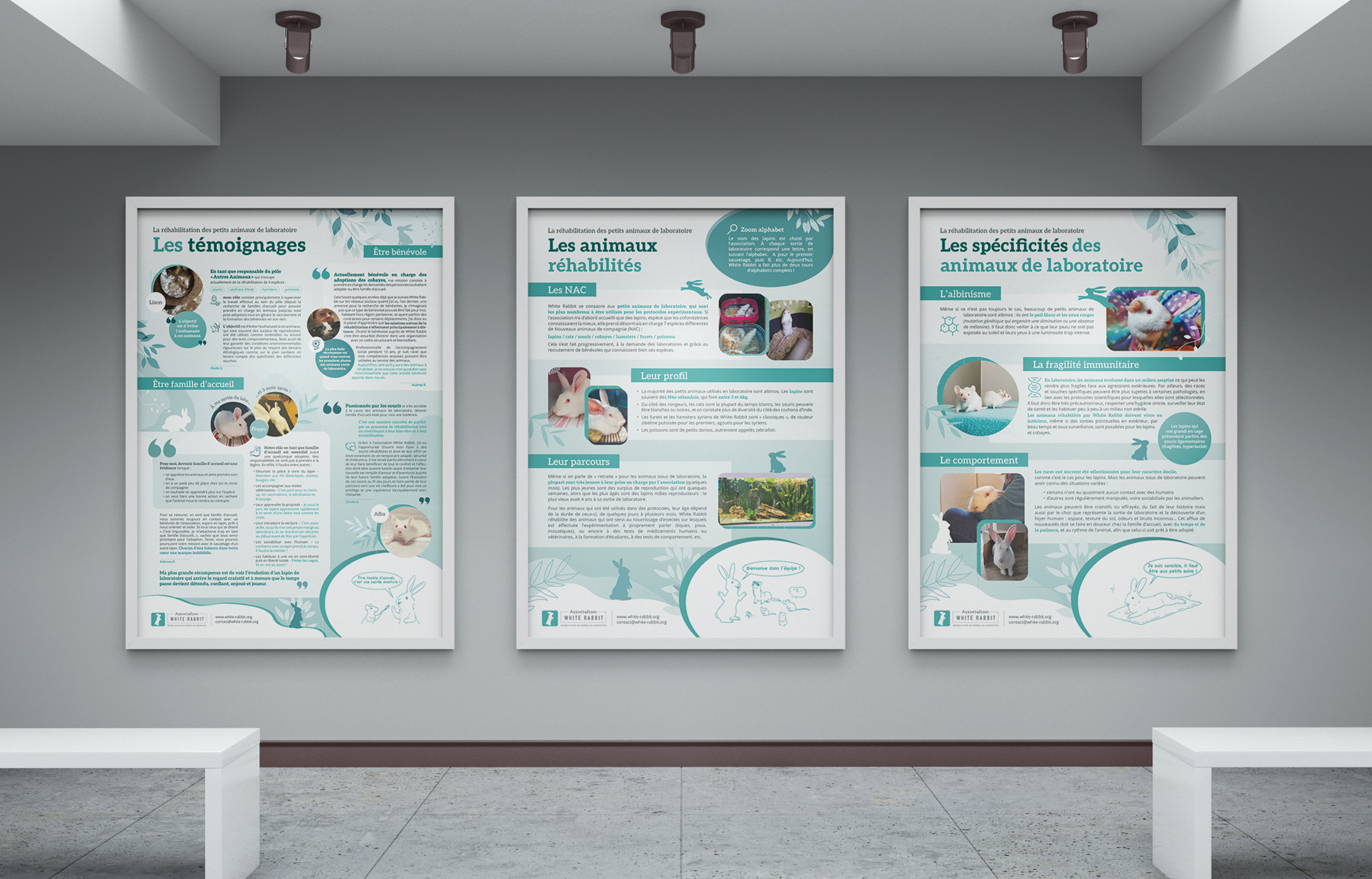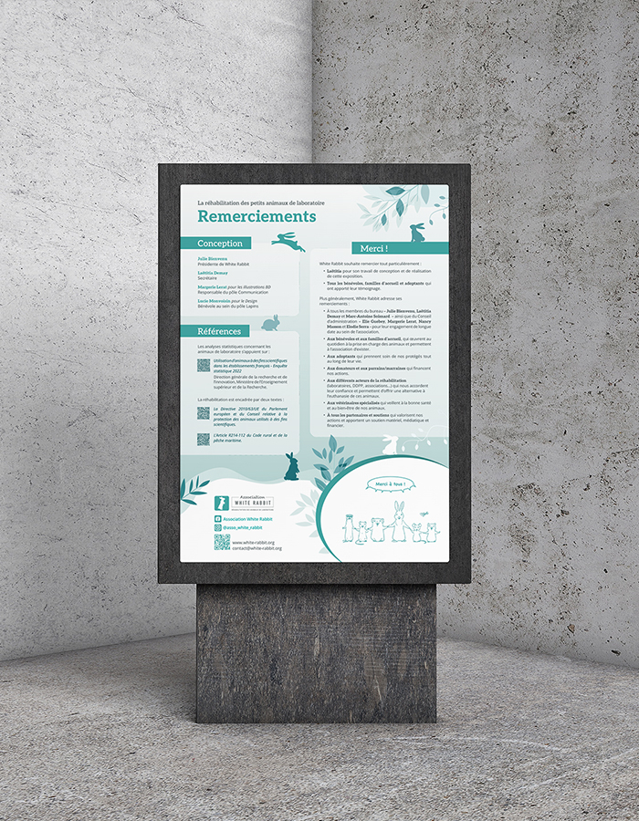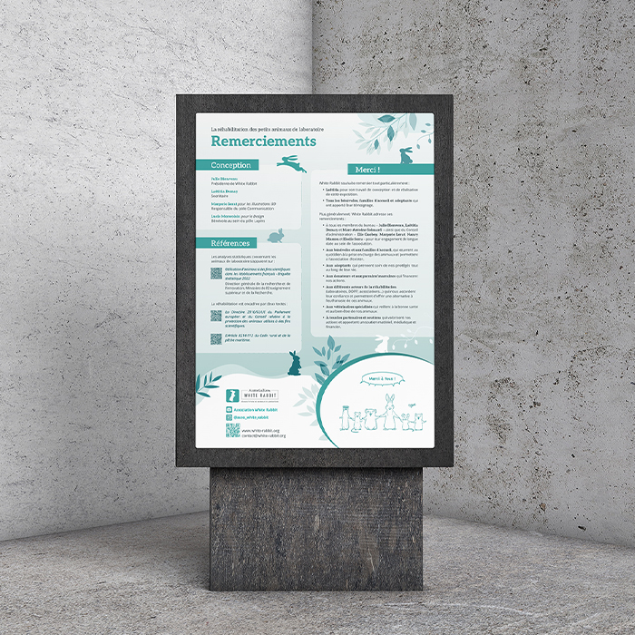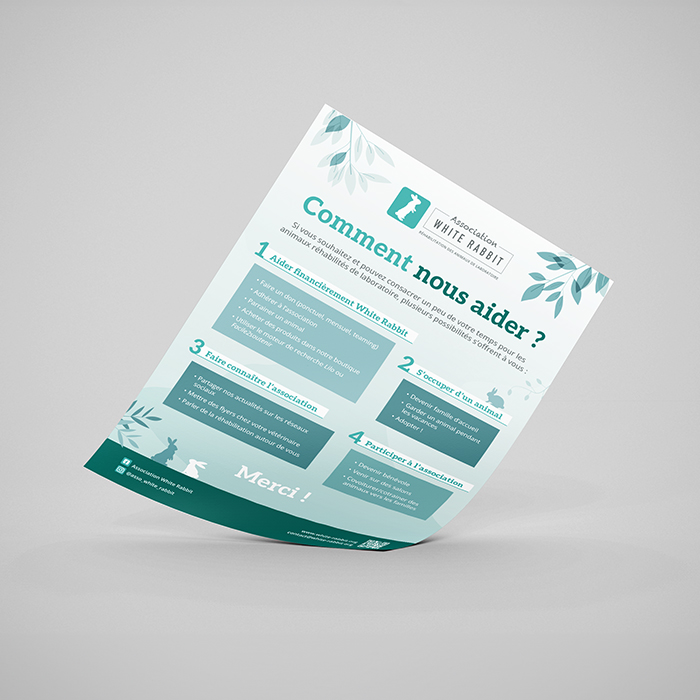 White Rabbit is an association that has been working since 2014 for the rehabilitation of small laboratory animals, and for which I am a volunteer graphic designer.
