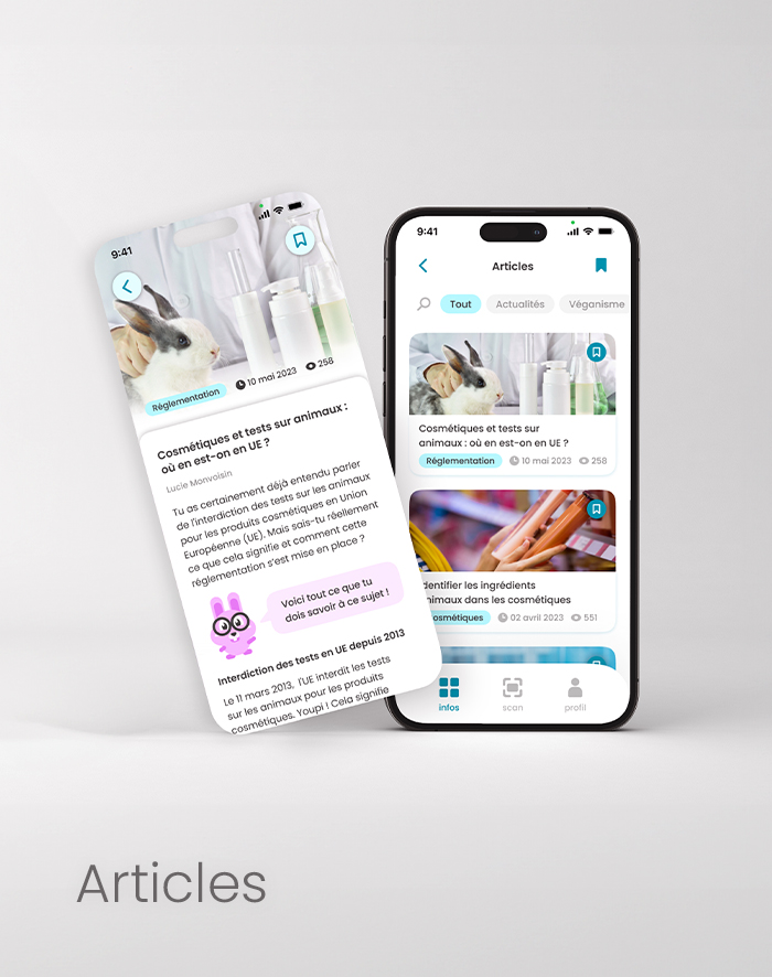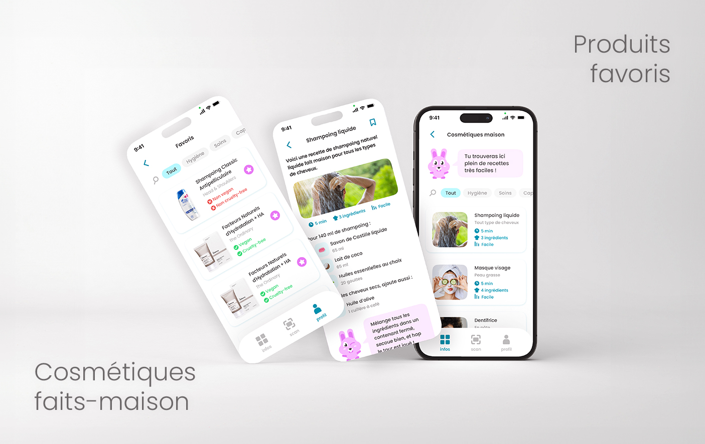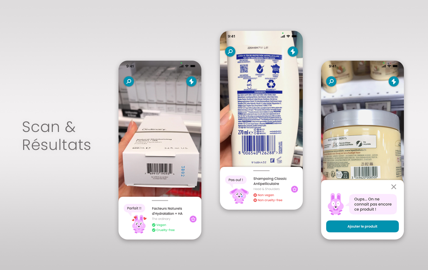 Animal welfare is a cause particularly close to my heart, and one I wish to contribute to. So I came up with BunnyScan, a mobile application which allows users to scan cosmetic products to find out in real-time if they are cruelty-free and/or vegan. It also provides information on the various labels, articles on animal rights and homemade cosmetics recipes.