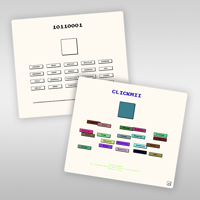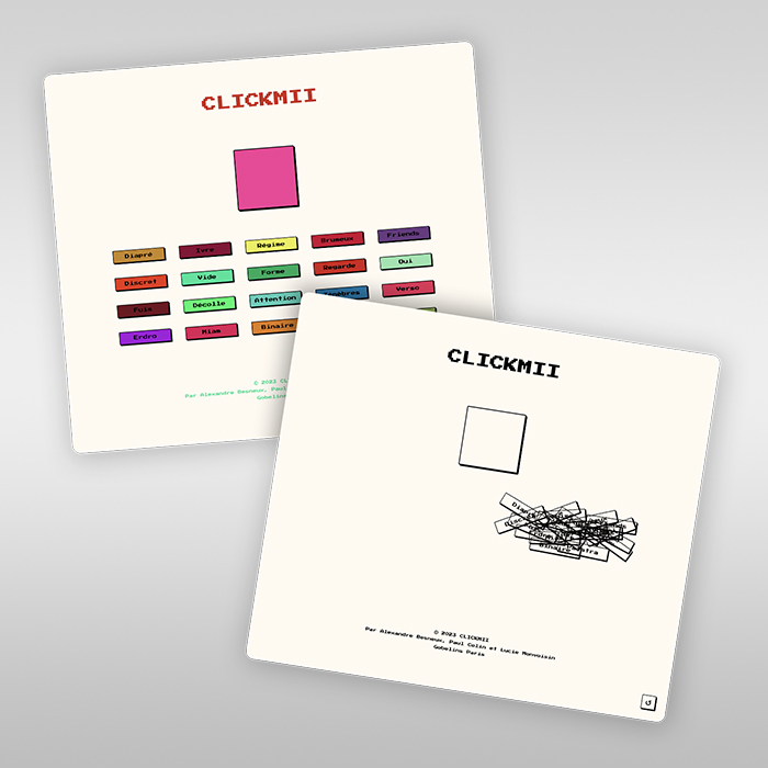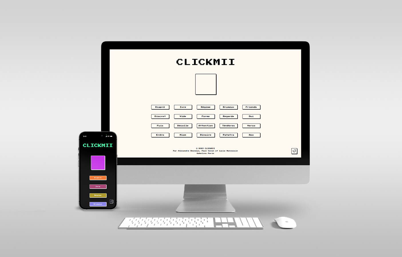 How to play with the web interface and make it fun? That's what we sought to do with Clickmii, a mini-game based on micro-interactions and micro-animations. The interface displays a collection of 20 buttons, each interacting in a more or less unexpected way with the user.