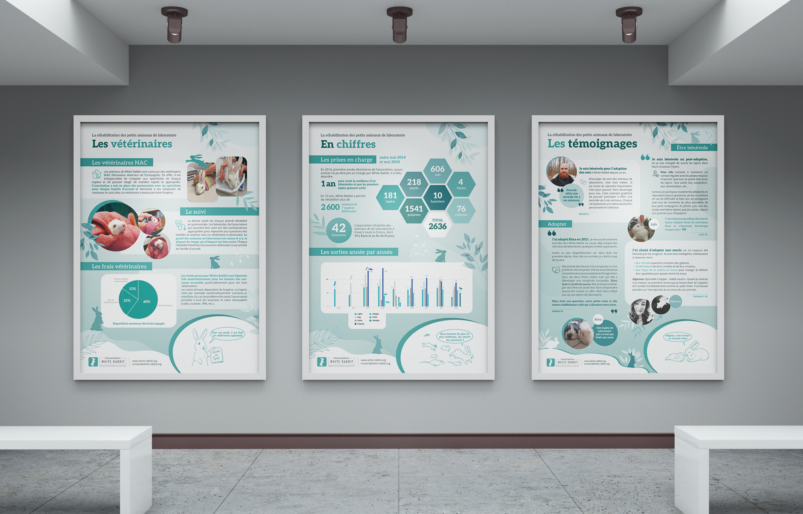 White Rabbit is an association that has been working since 2014 for the rehabilitation of small laboratory animals, and for which I am a volunteer graphic designer.